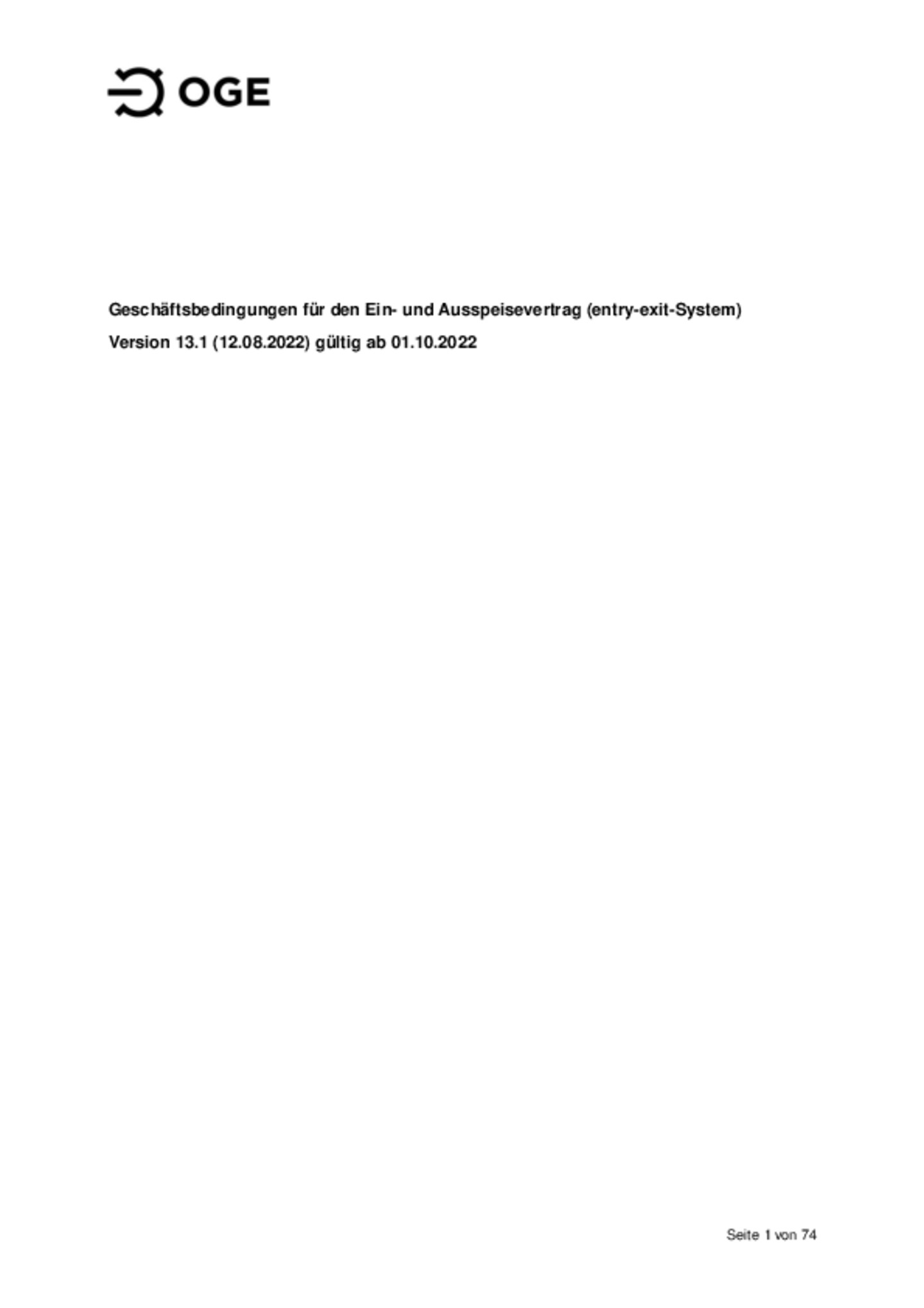 Geschäftsbedingungen für den Ein- und Ausspeisevertrag (entry-exit-System), gültig ab 01.10.2022