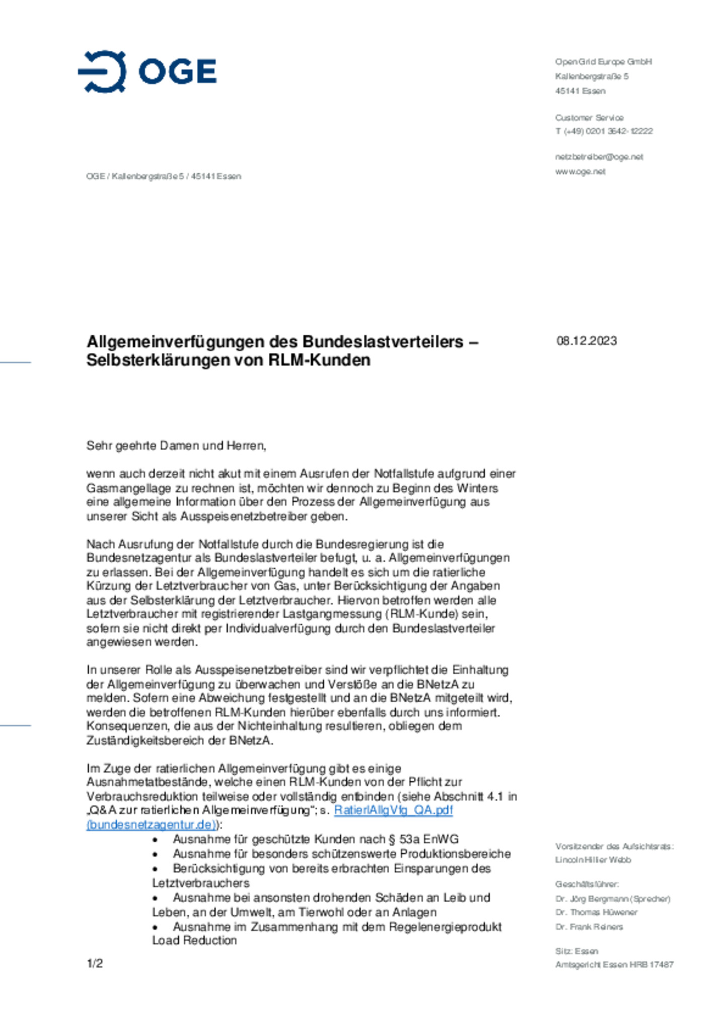 Unter folgendem Link gelangen Netzbetreiber zu dem von uns eingesetzten Krisenportal: