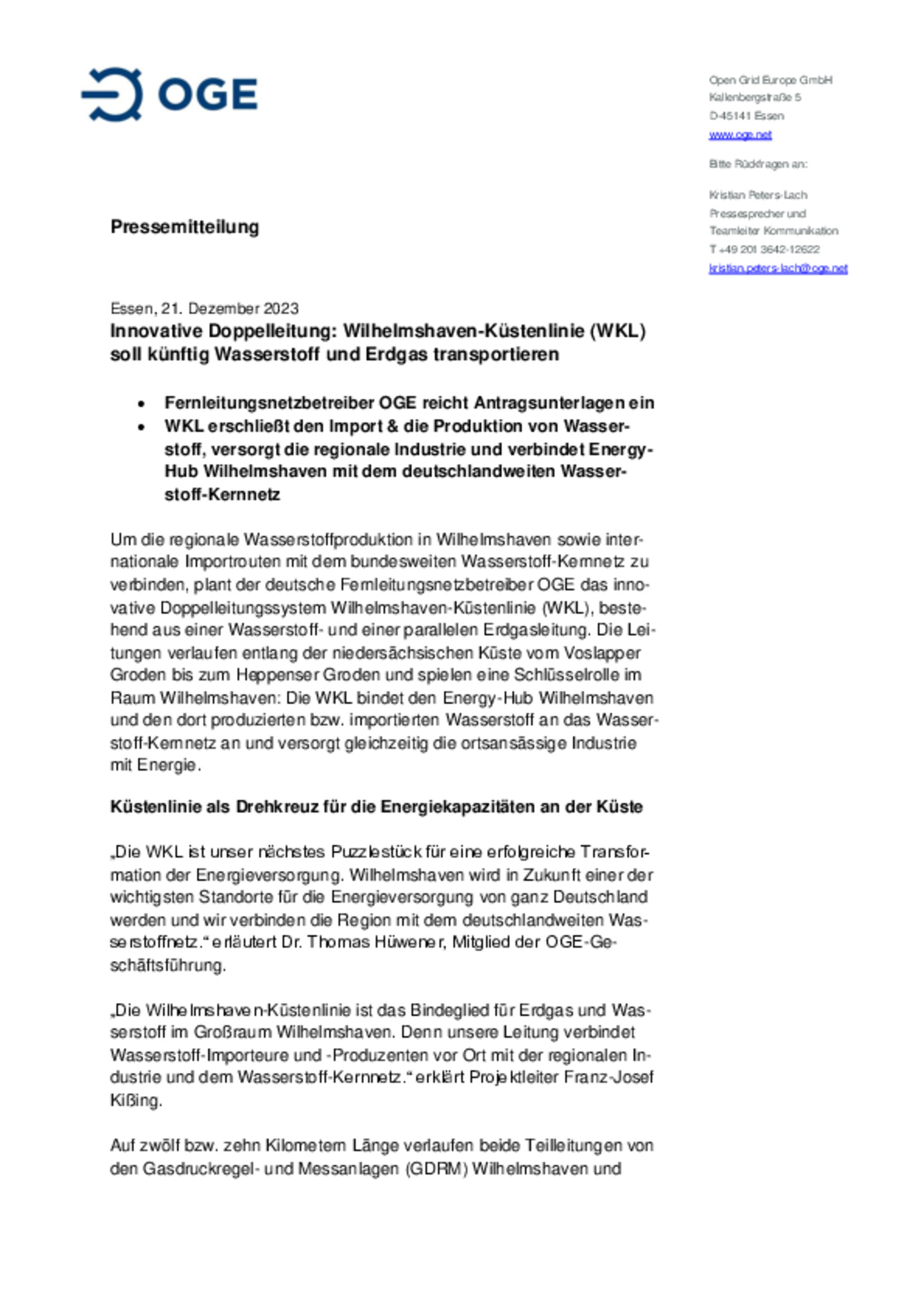 Die drei Entwicklungspartner des BarMar-Projekts, Enagás sowie GRTgaz und Teréga, haben in Abstimmung mit OGE beschlossen, das Unternehmen Wood mit der Durchführung der technischen Vorstudien, der …Analyse der Trassenalternativen und der Auswahl des Korridors für das BarMar-Projekt zu beauftragen.