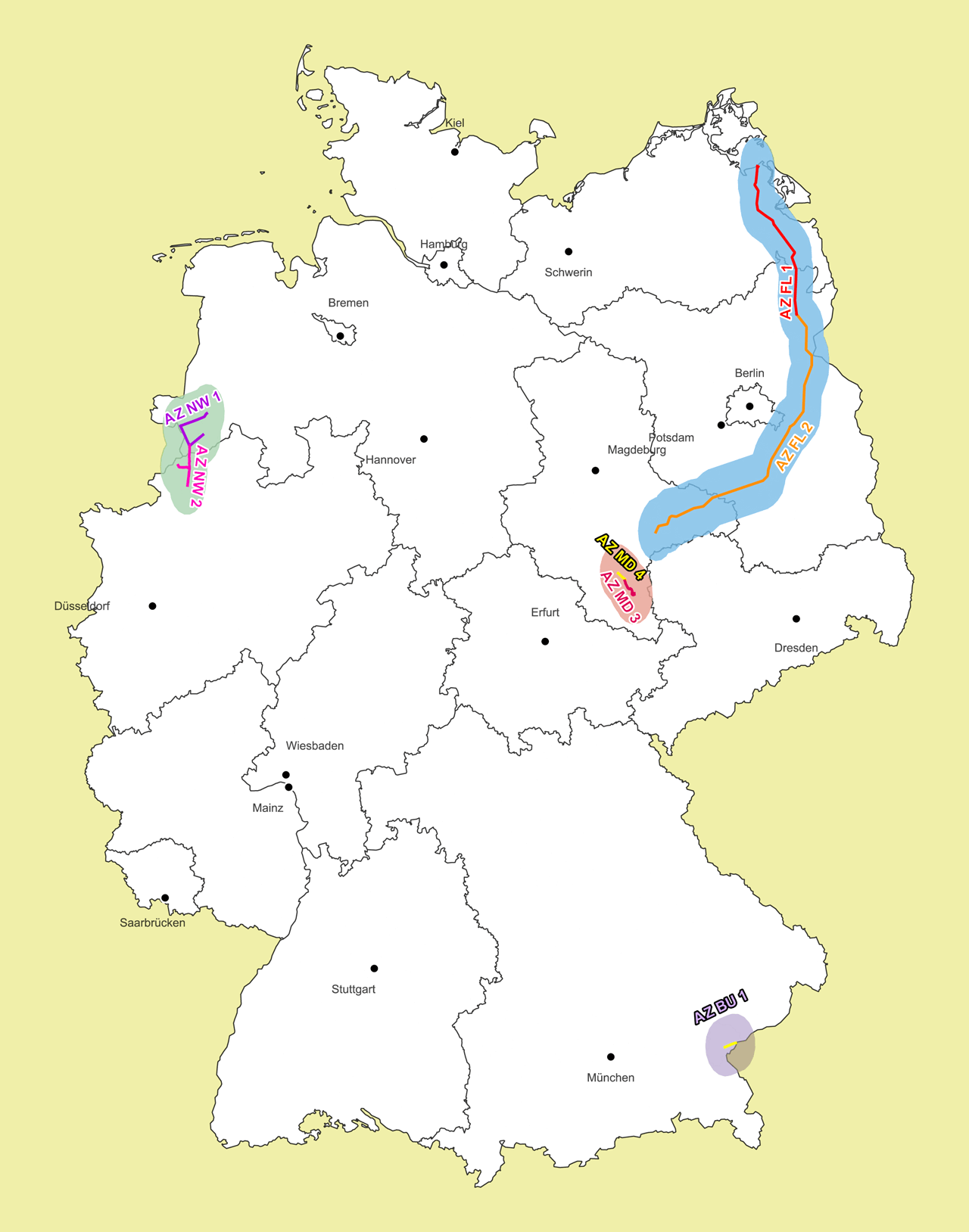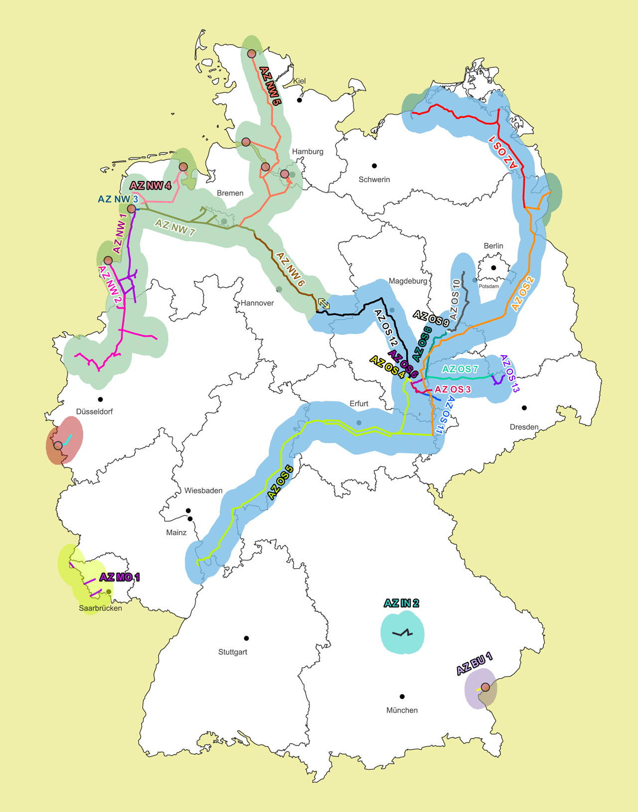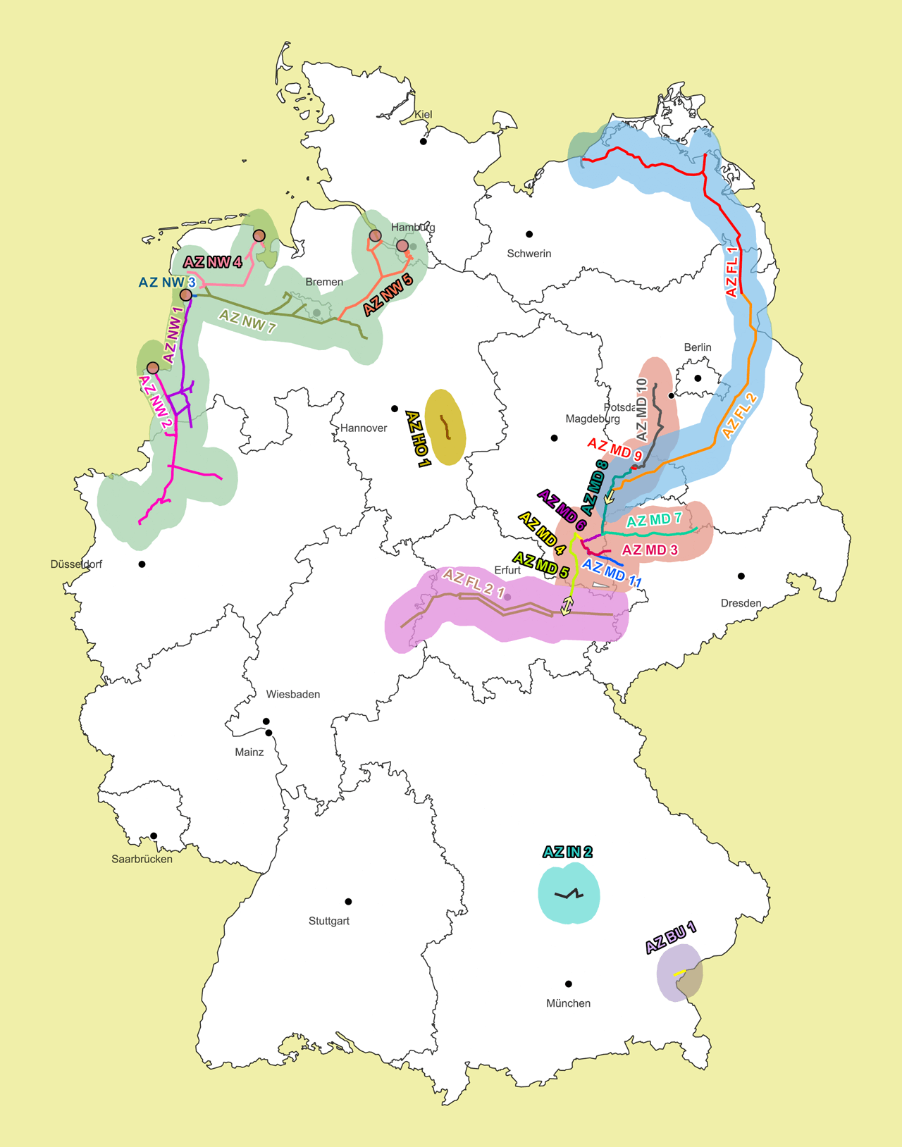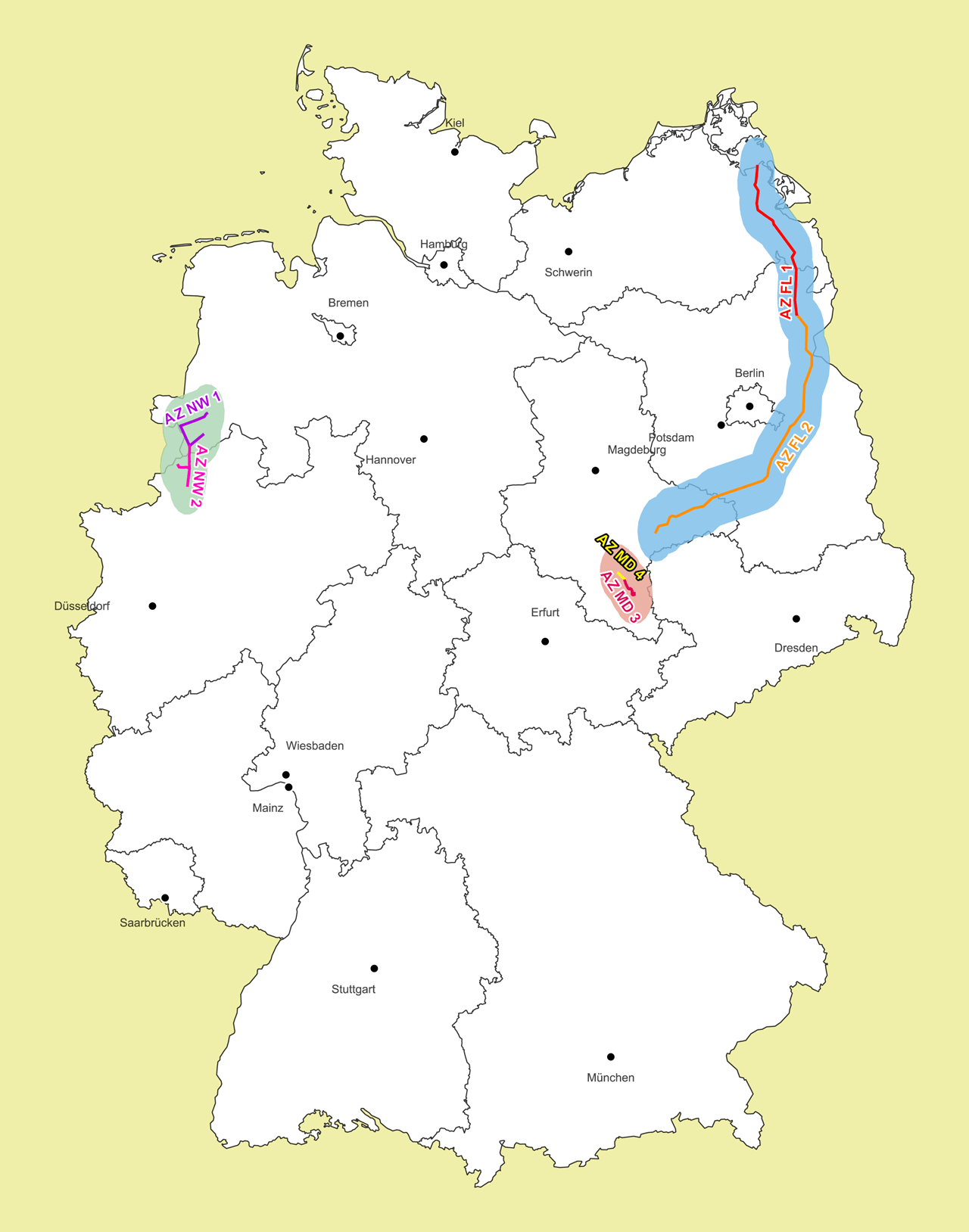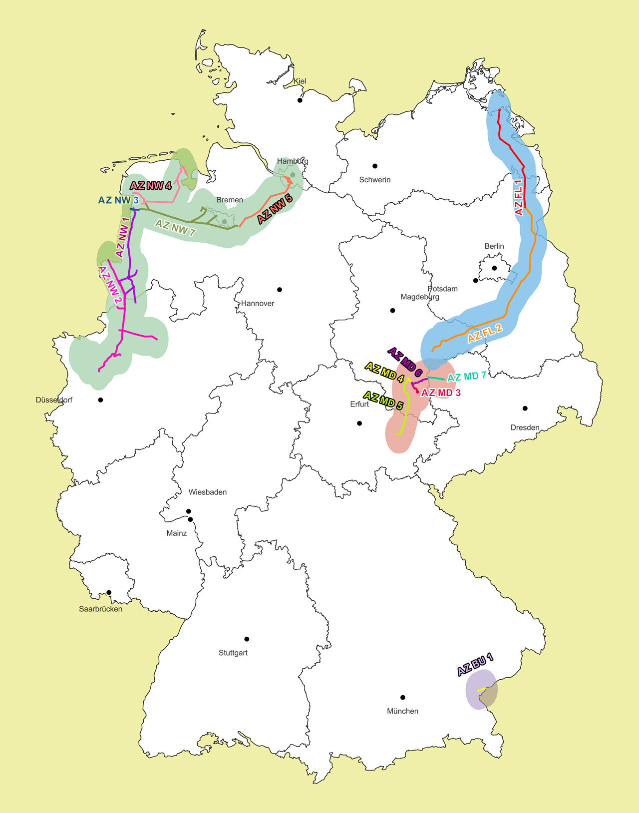 Das Wasserstoff-Kernnetz und das Kapazitätsangebot wachsen schrittweise über regionale Cluster hin zum Kernnetz. Innerhalb der Cluster können Marktteilnehmende frei zuordenbare feste Wasserstoffkapazitäten (FWK) an Punkten einer Angebotszone reservieren. Das Konzept der Angebotszone wurde bereits am 16.10.2025 veröffentlicht und ermöglicht ein möglichst hohes, flexibles und bedarfsgerechtes Kapazitätsangebot innerhalb der Cluster.