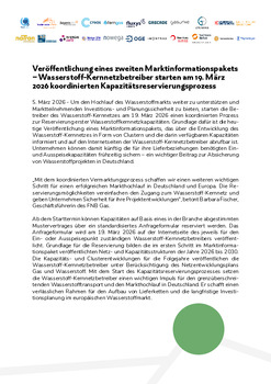Der über alle Wasserstoff-Kernnetzbetreiber koordinierte Prozess basiert auf dem neu veröffentlichten Marktinformationspaket (siehe Download), welches unter anderem die Cluster-/Kapazitätsentwicklung im Zeitraum 2026-2030 sowie den konkreten Anfrage- und Reservierungsprozess beschreibt.
