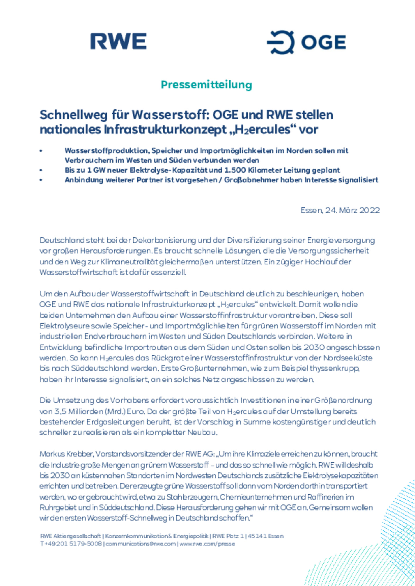Die H2ercules-Initiative wurde im Jahr 2022 von OGE und RWE gemeinsam ins Leben gerufen. Die Idee war, Erzeuger, Importeure, Speicherbetreiber, Netzbetreiber und Abnehmer verschiedener Branchen auf Basis einer konkreten Infrastruktur zusammenzubringen. Durch diese wertschöpfungsstufenübergreifende Zusammenarbeit soll das Henne-Ei-Problem im XXL-Format überwunden werden und den Weg auch für weitere Projekte ebnen.