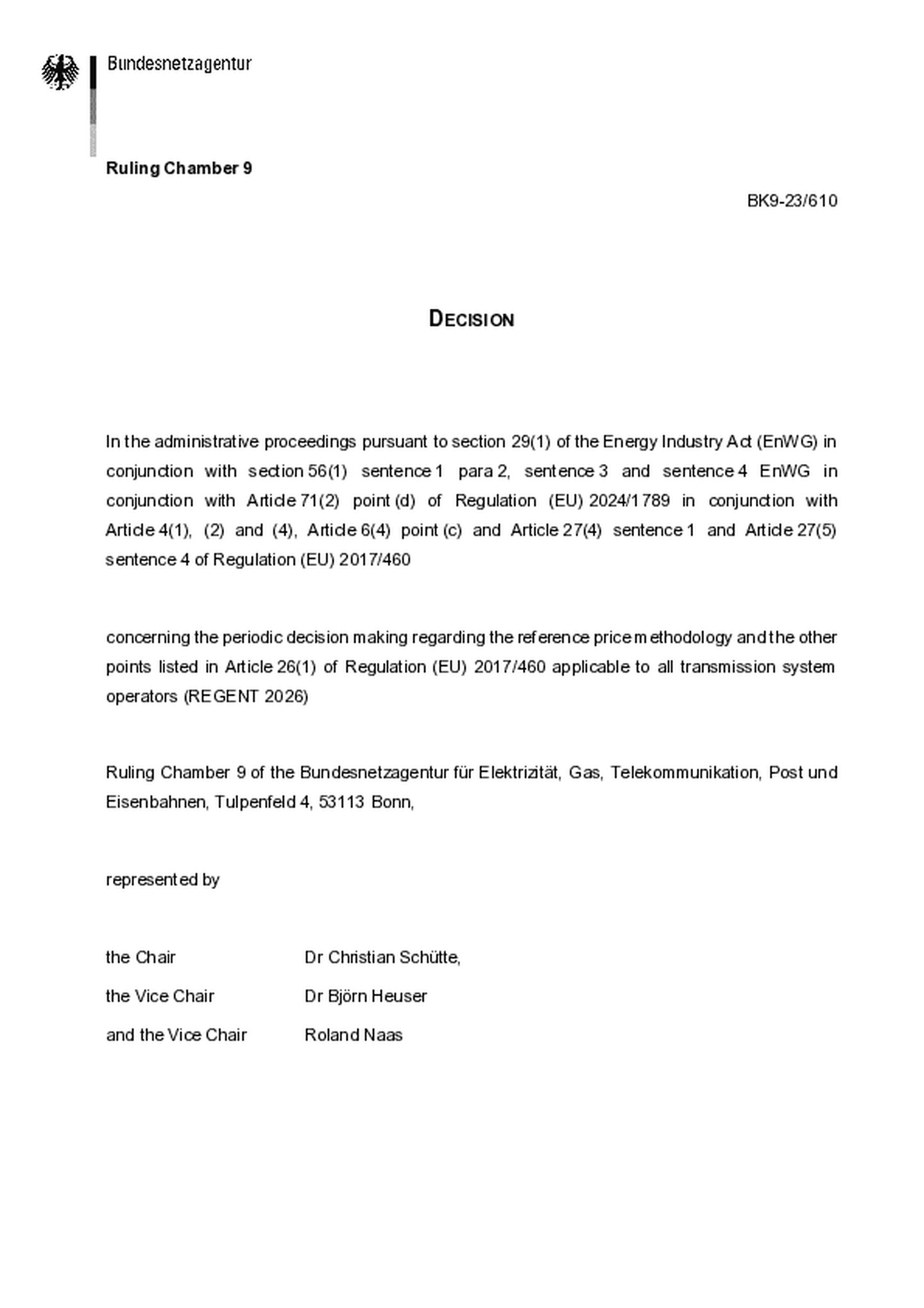 In order to fulfil the publication requirements, the former approach of the BNetzA (Appendix 5 of REGENT 2021 decision) was continued to forecast the tariffs on an indicative basis. According to this, an increase in the charge would be expected in 2026.