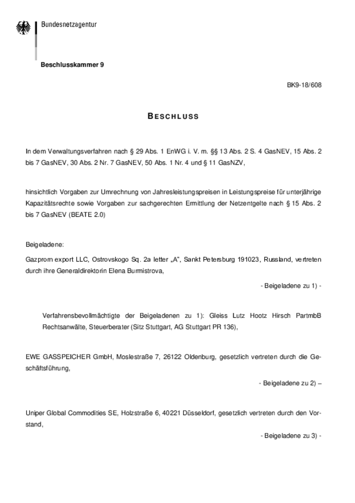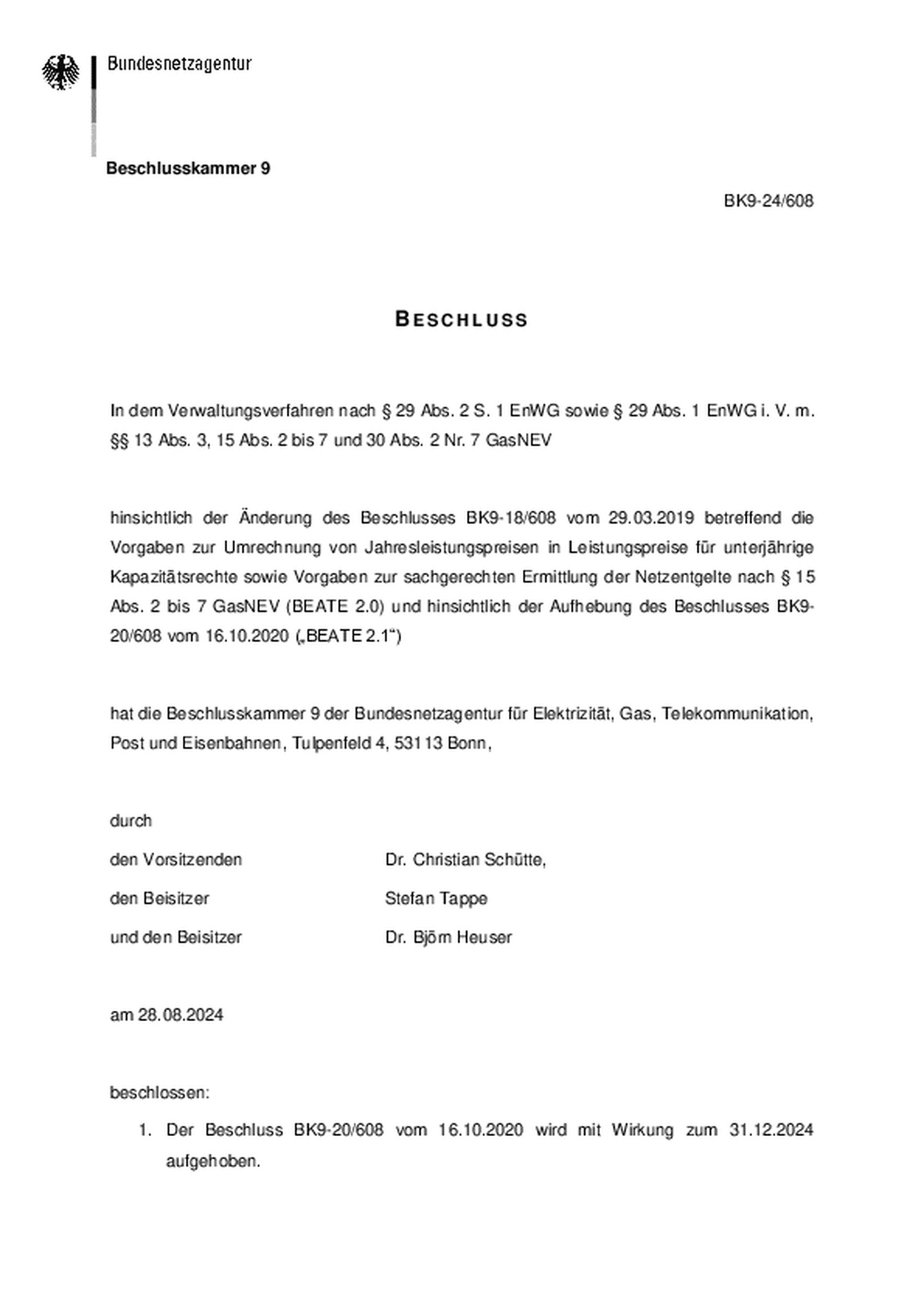 The methodology to calculate discounts for interruptible capacity of storage points is specified in the decision of the BNetzA BK9-18/608 (chapter 3.2). Further explanations on the determination of the probability of interruptions according to the decision BK9-18/608 (Decision ‘BEATE 2.0‘) can be found at the bottom of the page for download.