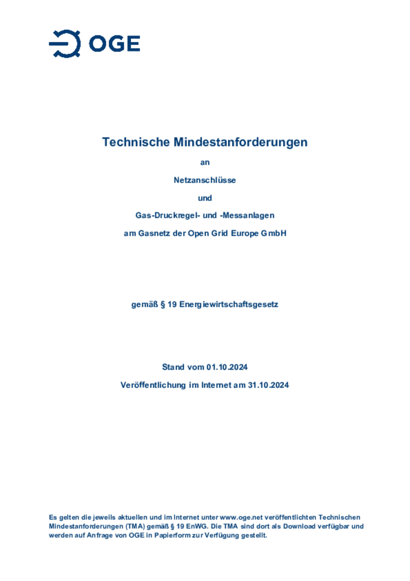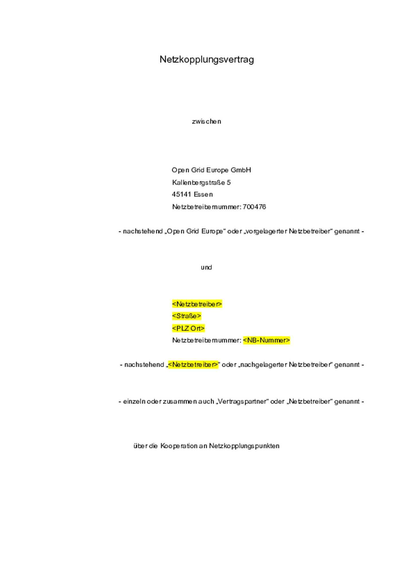 The specimen network interconnection contract published by Open Grid Europe is based on the provisions of Section 2 of Part 3 (Articles 26-31) and of Part 5 (Articles 52-62) of the Agreement on Cooperation between Operators of Gas Supply Networks Located in Germany as Amendement from 22nd March 2024 (KoV XIV), which is attached to the contract as Annex 5 for information.