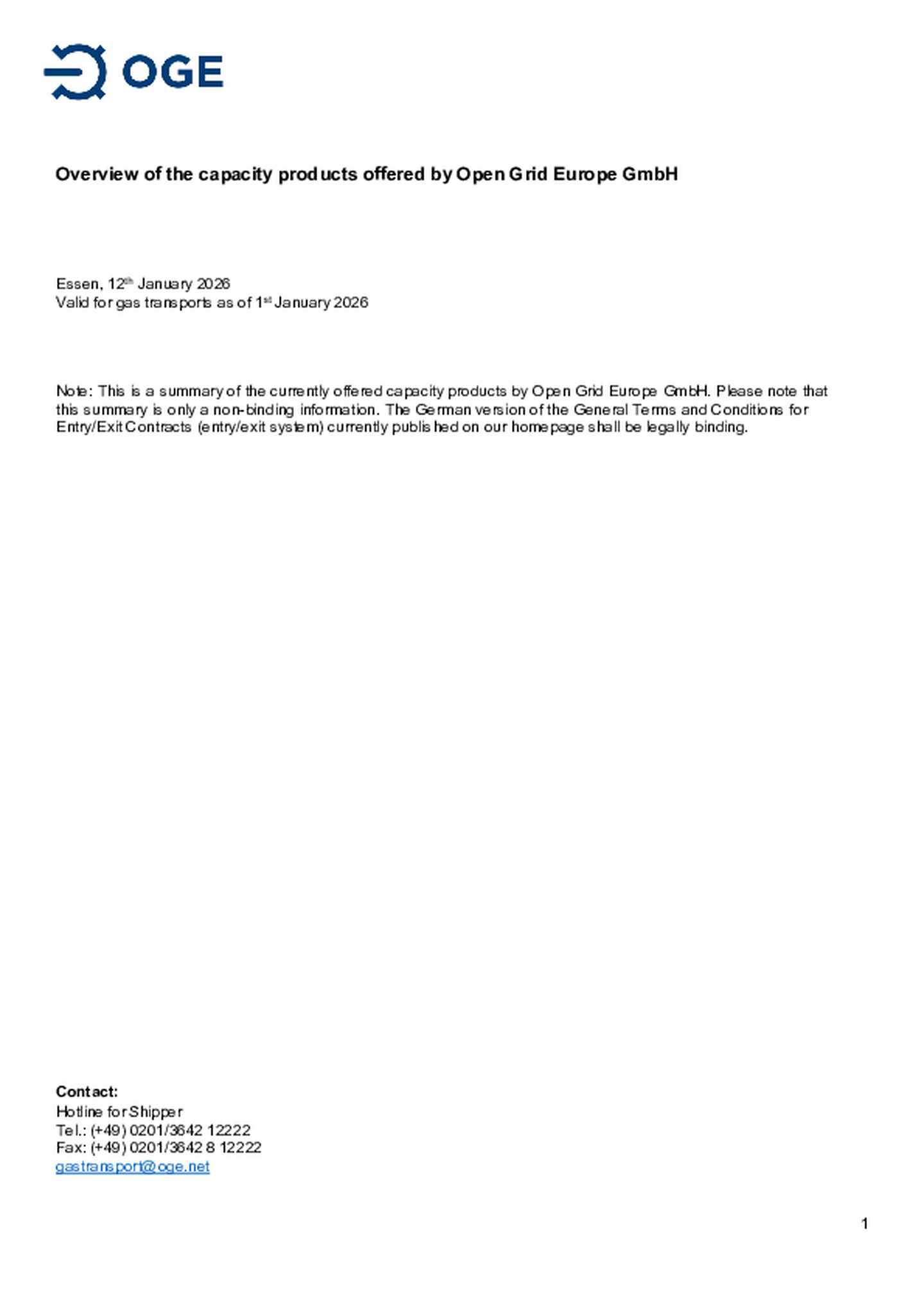 Please note that this information is non-binding and for convenience only. The legally binding document is the terms and conditions of the standard entry or exit contract in its current version as published by OGE.