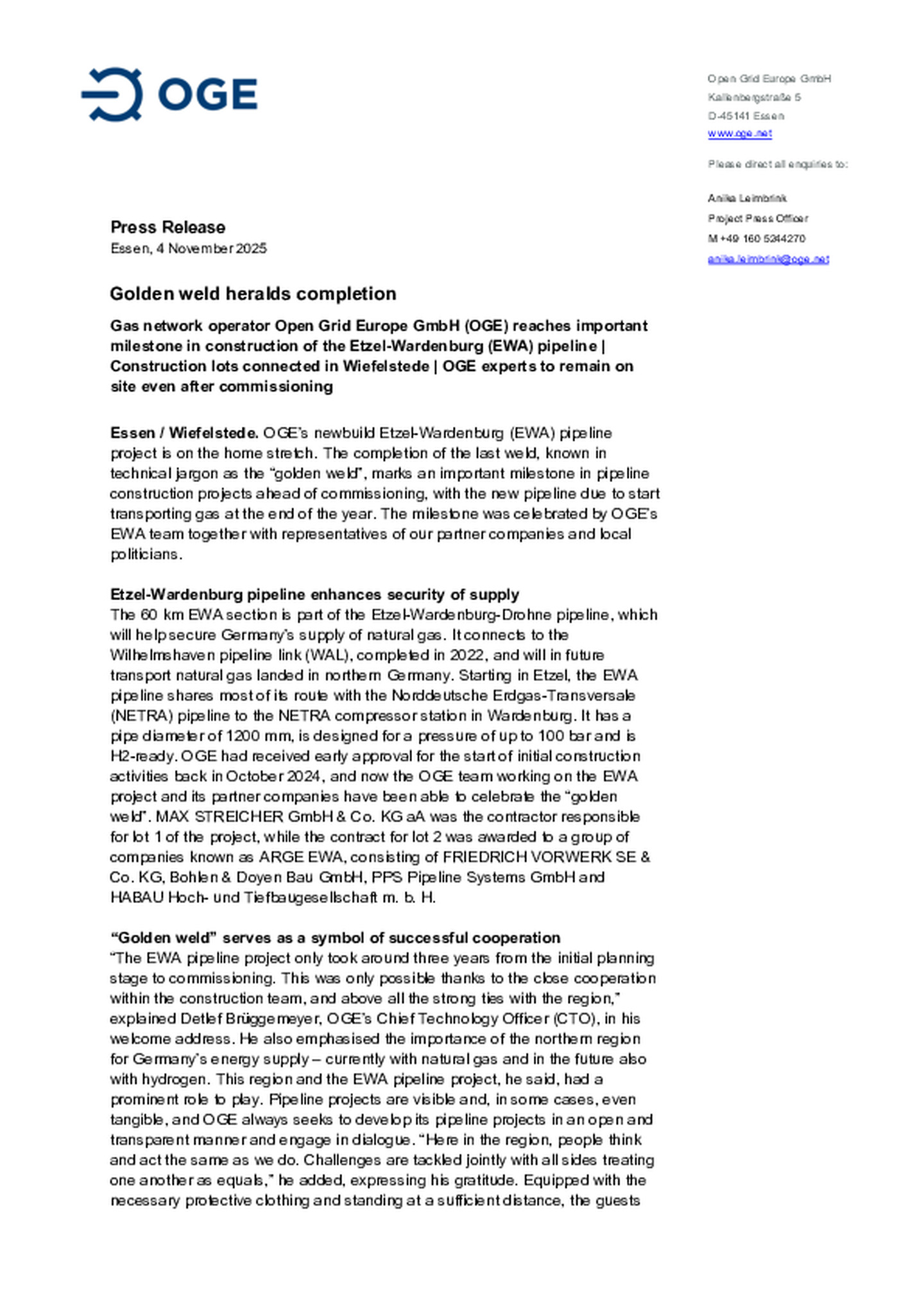 OGE Energy Policy Dialogue in Berlin: “Three pillars for the future: getting to net zero with natural gas, hydrogen and carbon management.”
