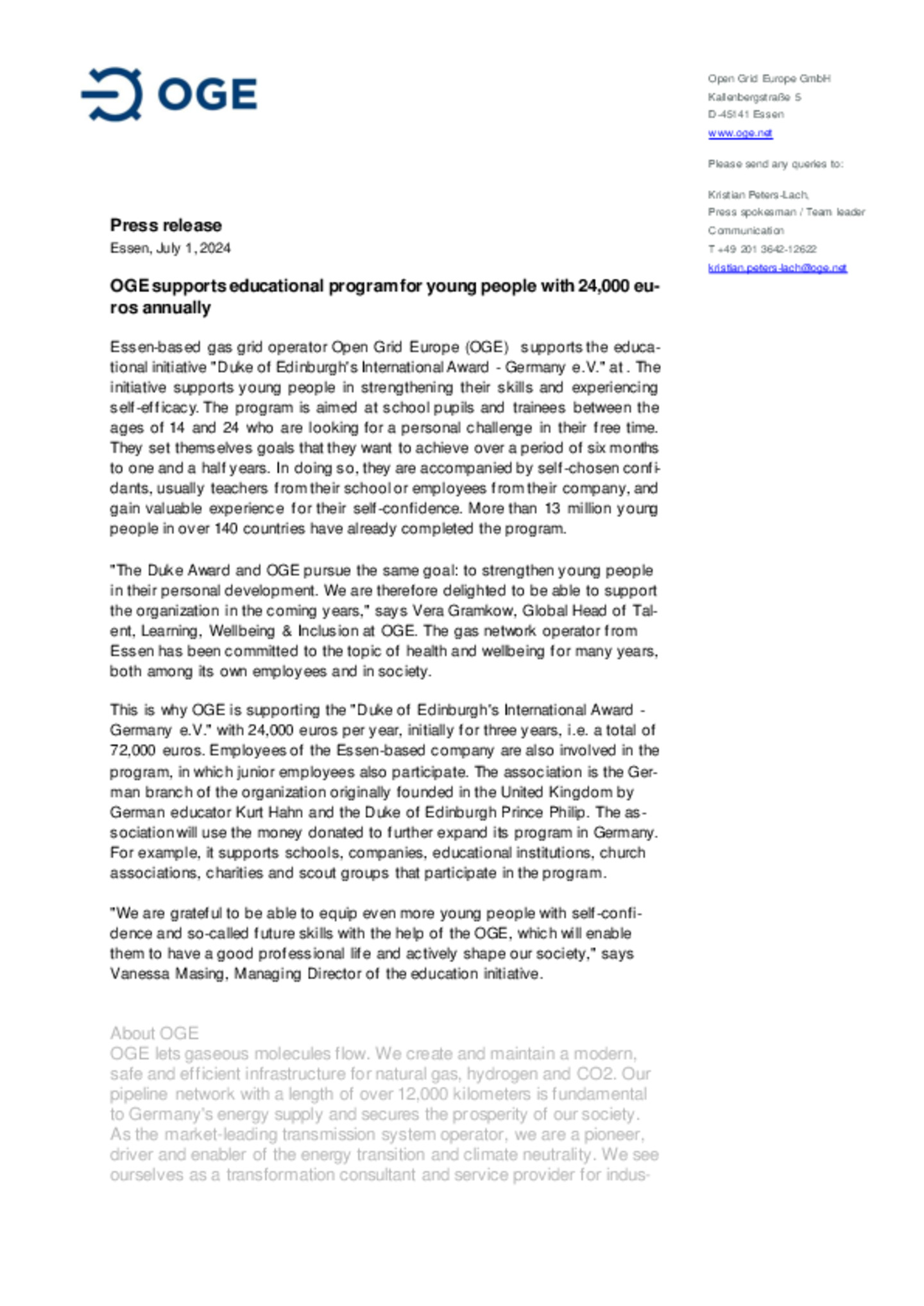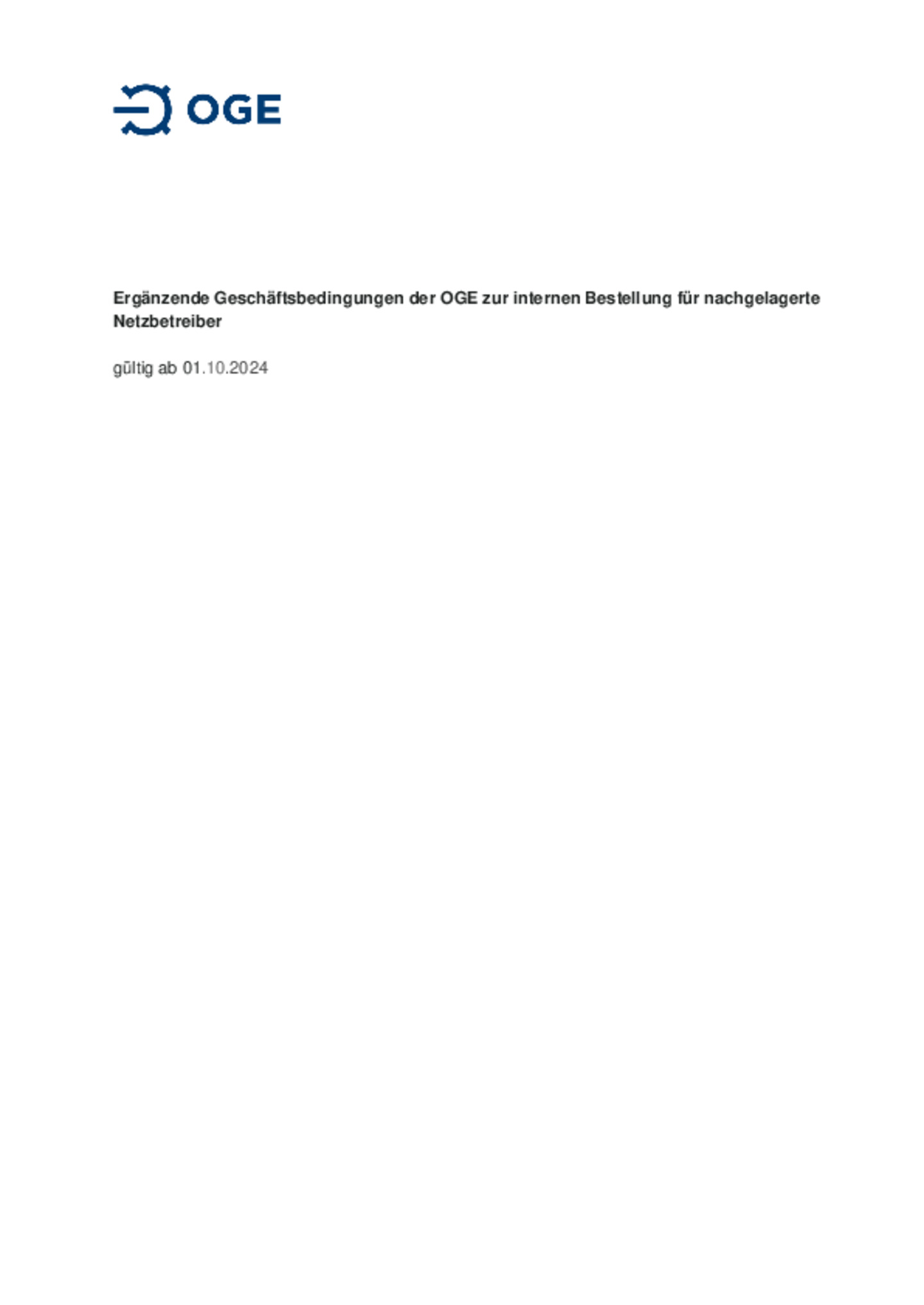 Supplementary terms and conditions of Open Grid Europe GmbH for internal orders for downstream network operators as of 01.10.2024 – published on 01.08.2024 (only in German)