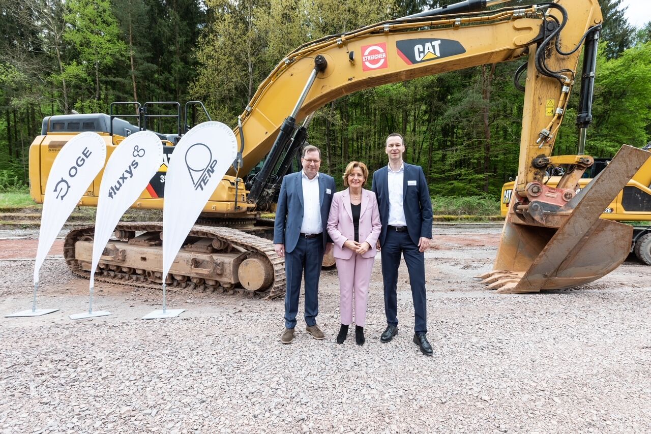 From left to right: Friedrich Rosenstock, Managing Director of Fluxys TENP; Malu Dreyer, Minister President of Rhineland-Palatinate; Dr Thomas Hüwener, OGE Managing Director